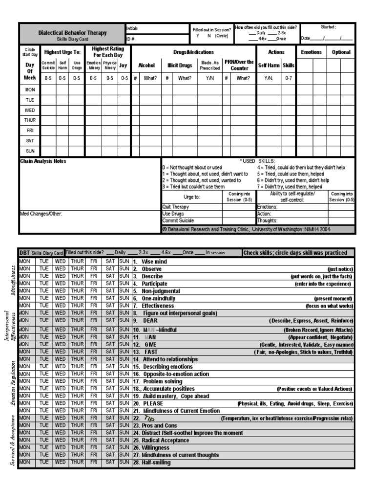 Emotional Tracking Diary Card. These worksheets and other DBT themed products tie in with the DBT skill workshops available on the BrokenBrain Podcast YouTube Channel. Enter your official identification and contact details.